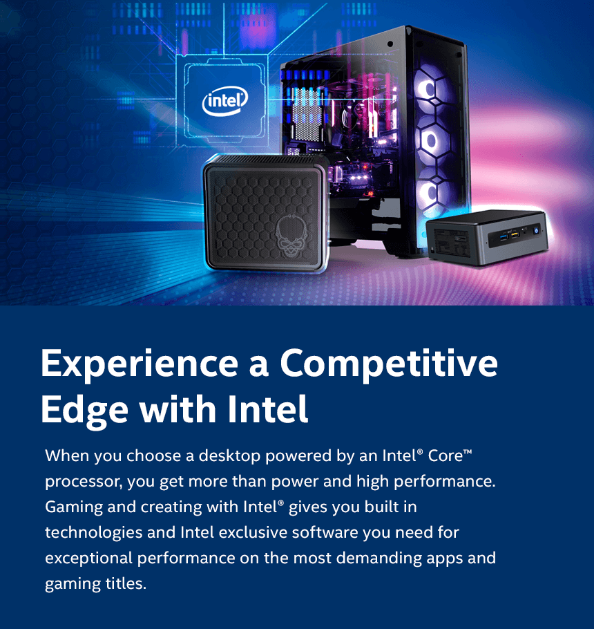 Learn more about Intel-powered Gaming desktops and Intel NUCs and how it gives uncompromised experiences for gaming and creating.